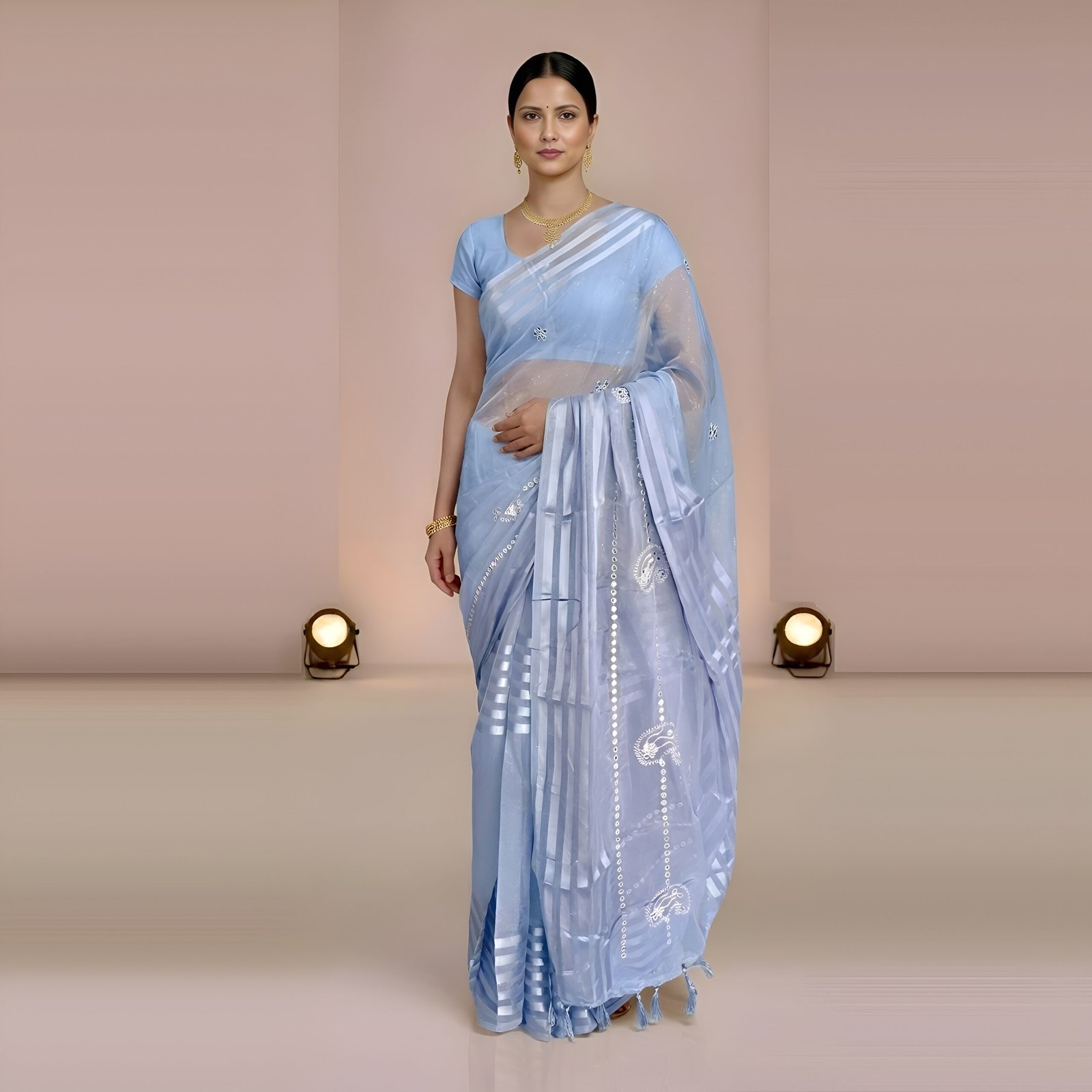 RAjLUXE Every-Day Cloud Chiffon Saree with Blouse Piece (Grey)