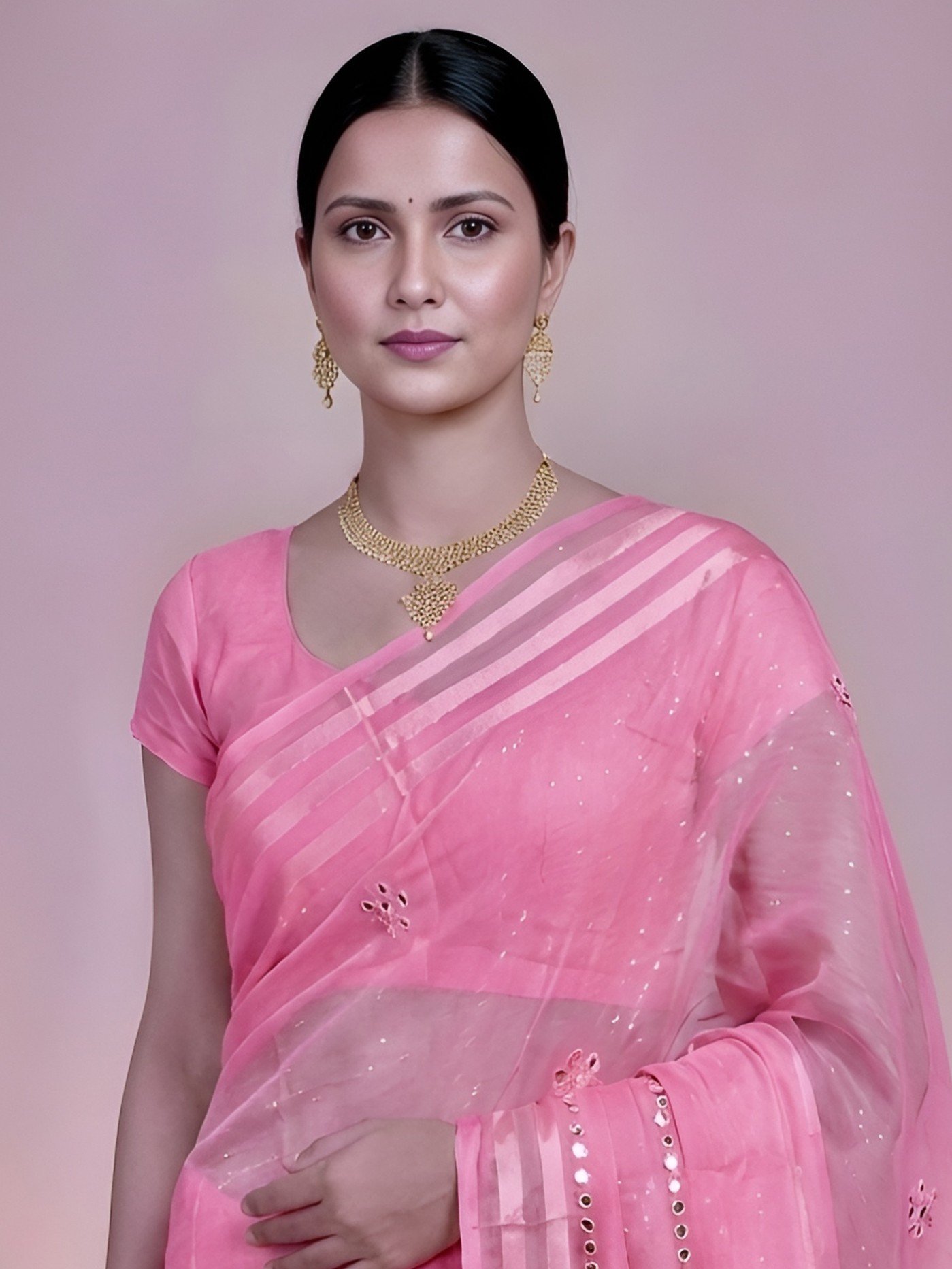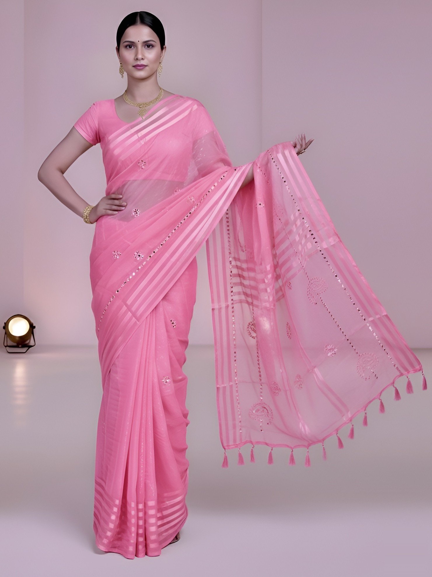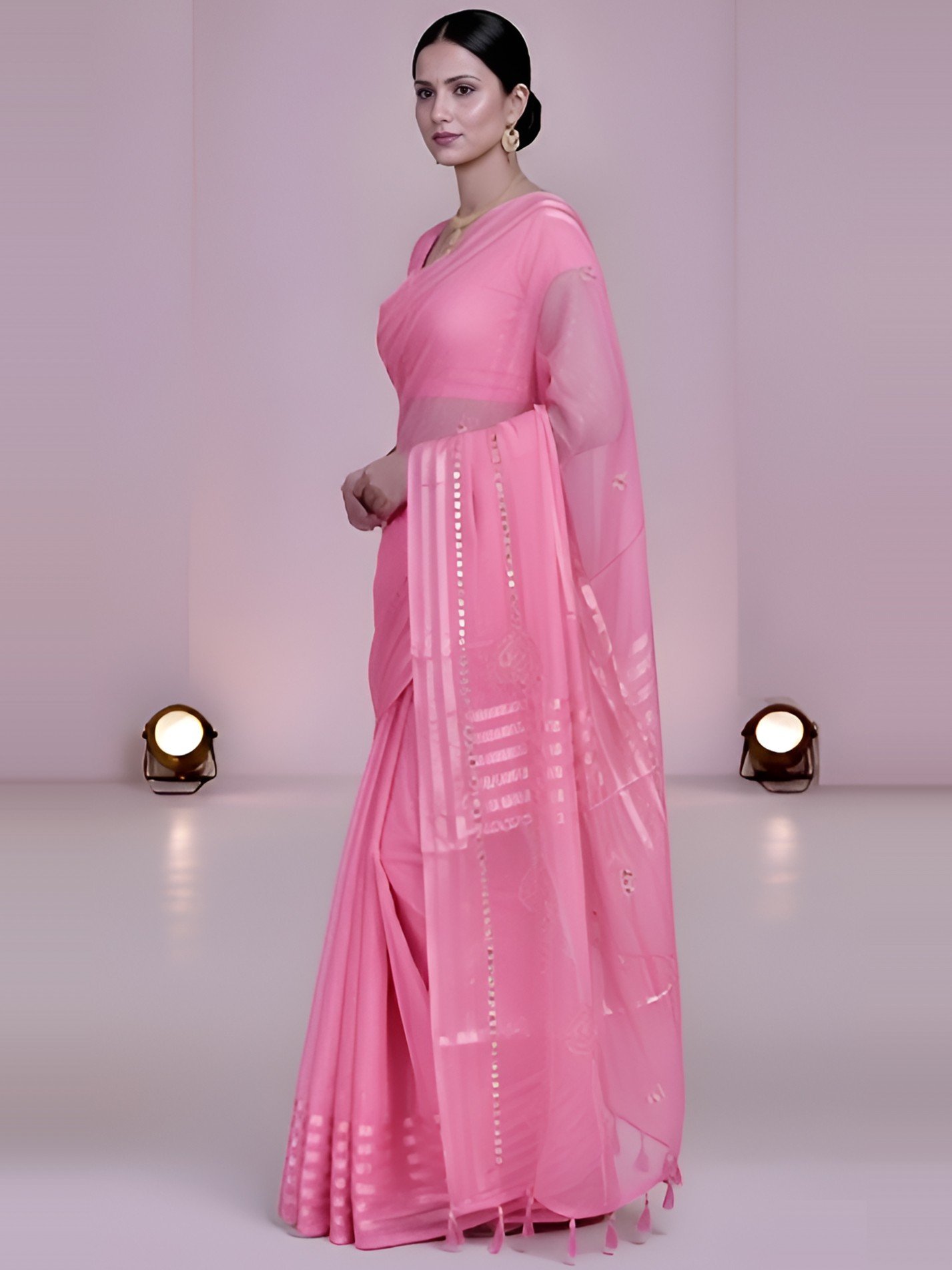 RAjLUXE Comfort Rose Chiffon Saree with Blouse Piece (Pink)