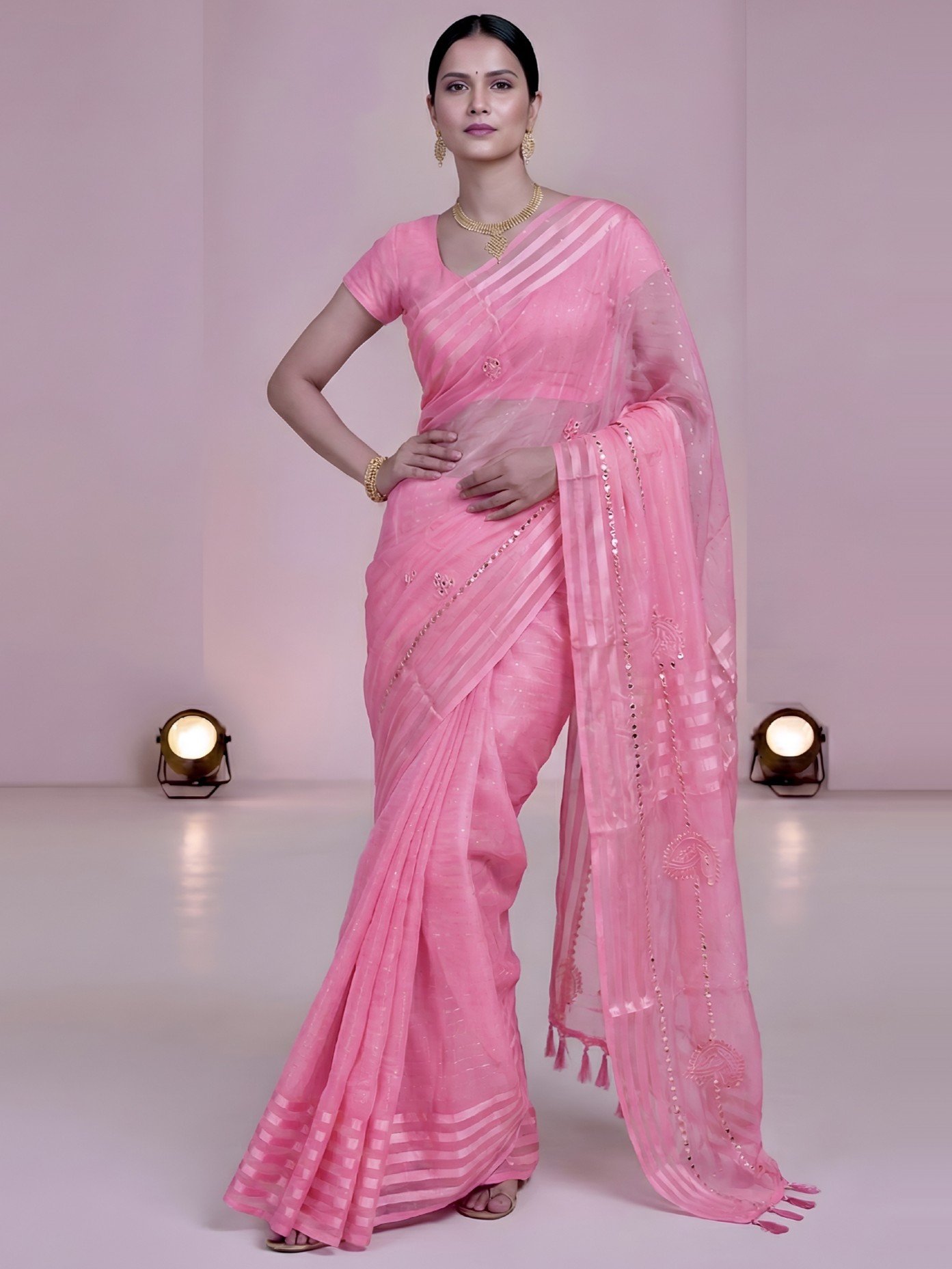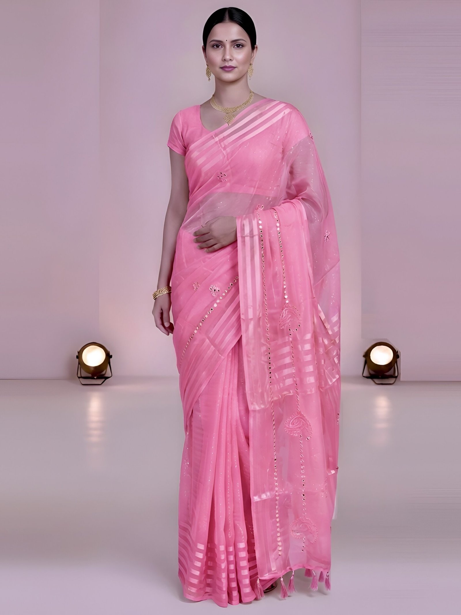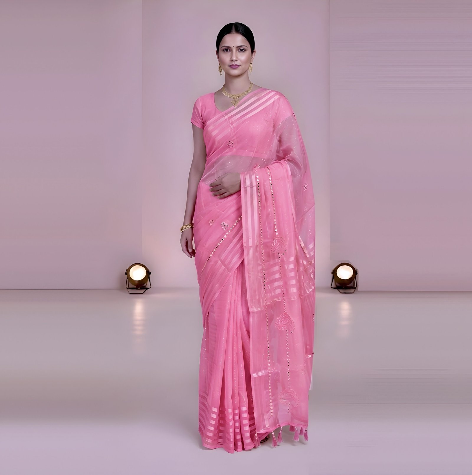 RAjLUXE Comfort Rose Chiffon Saree with Blouse Piece (Pink)