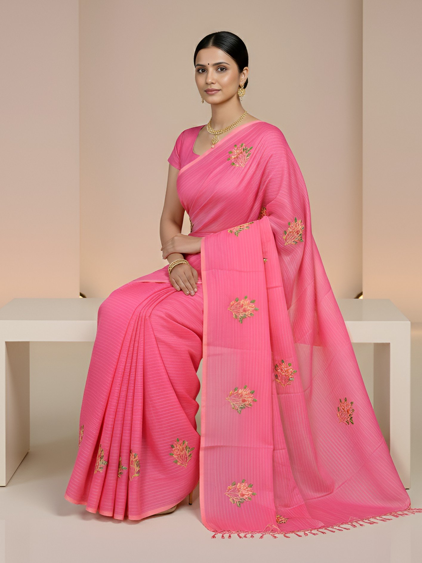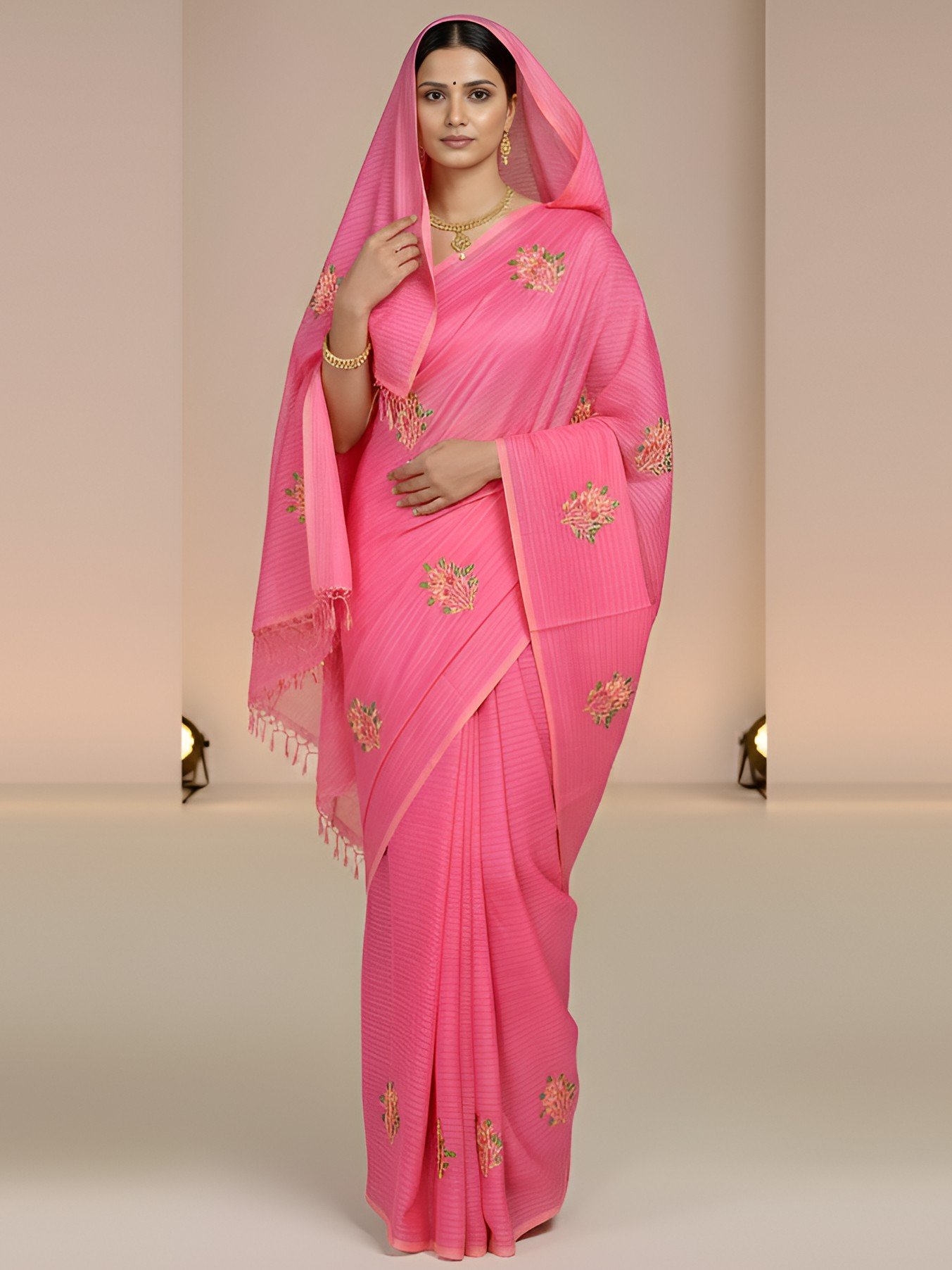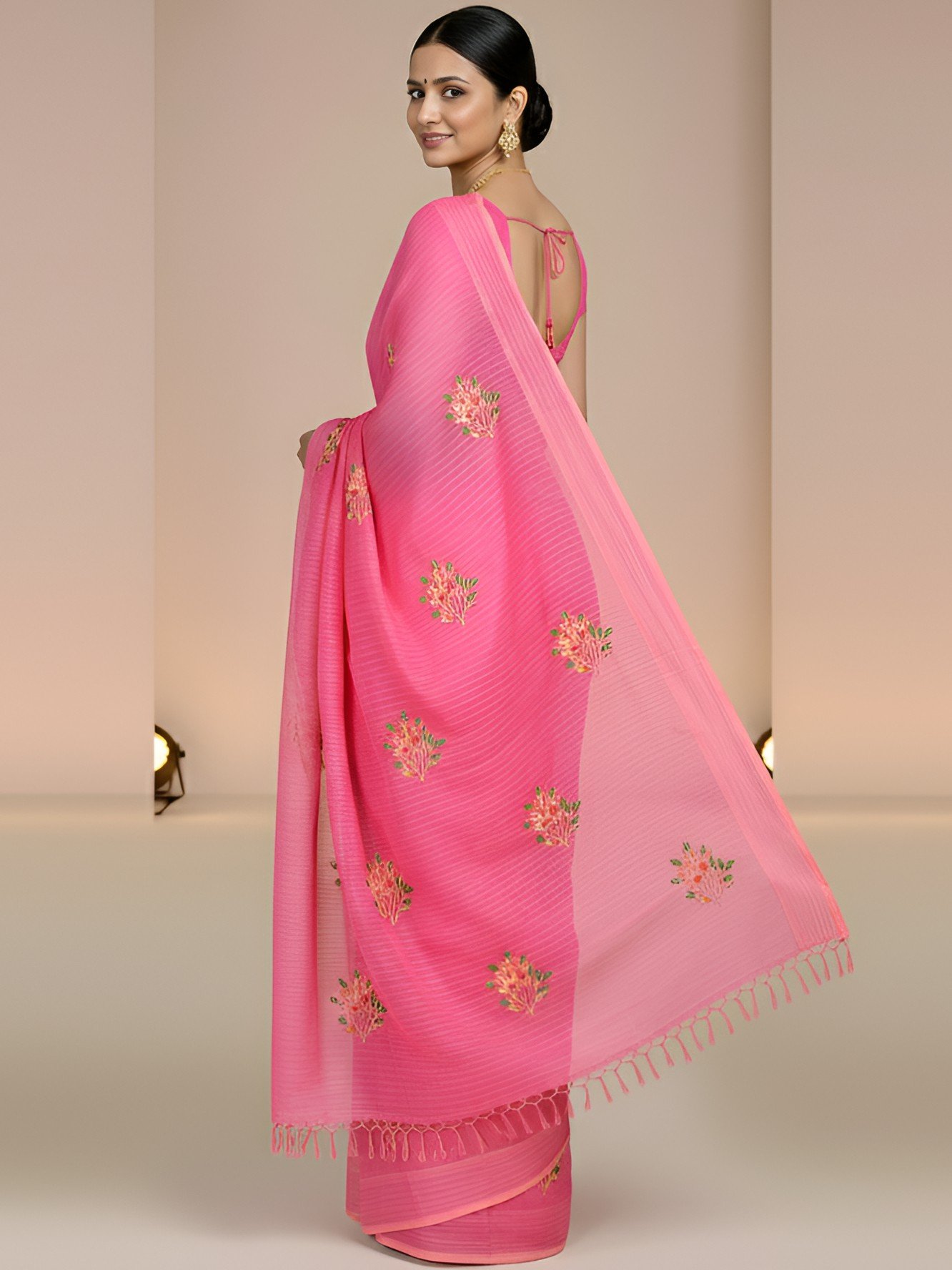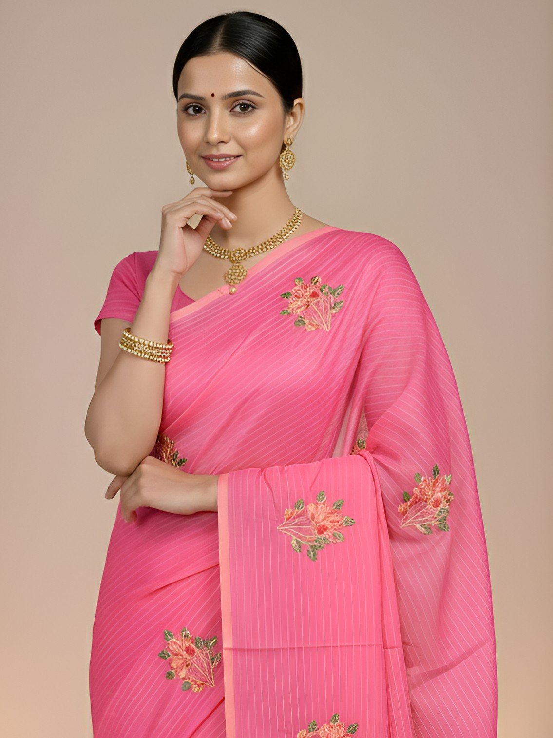 RAjLUXE Every-Day Rose Chiffon Saree with Blouse Piece (Pink)