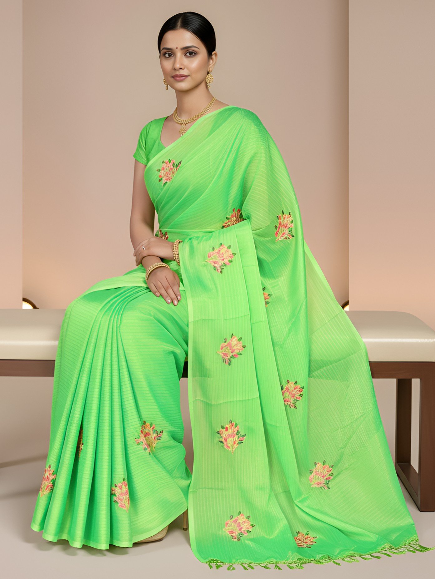 Be the first to review “RAjLUXE Every-Day Vasundhara Chiffon Saree with Blouse Piece (Mint Green)”