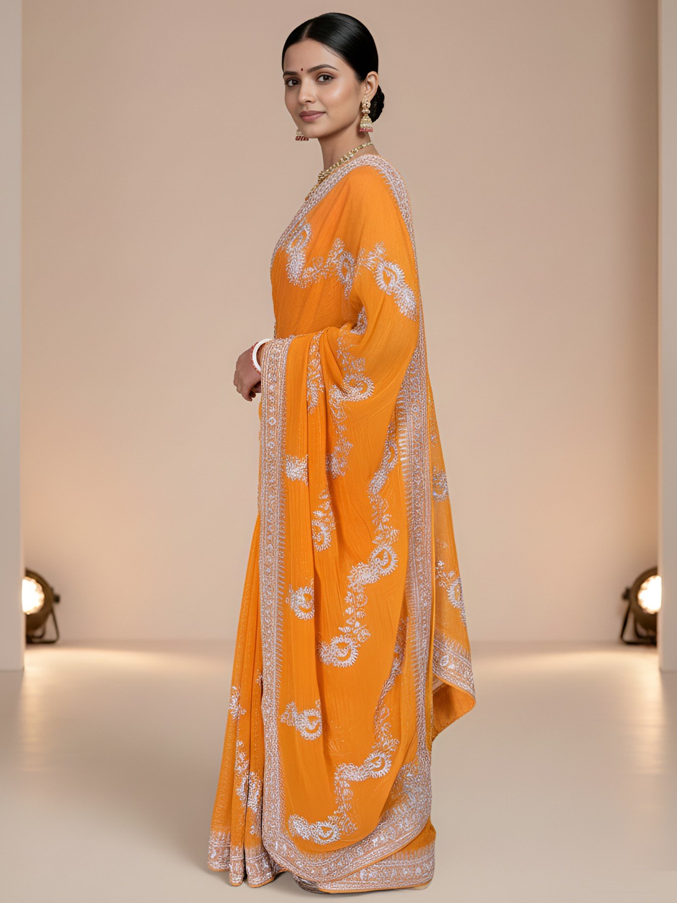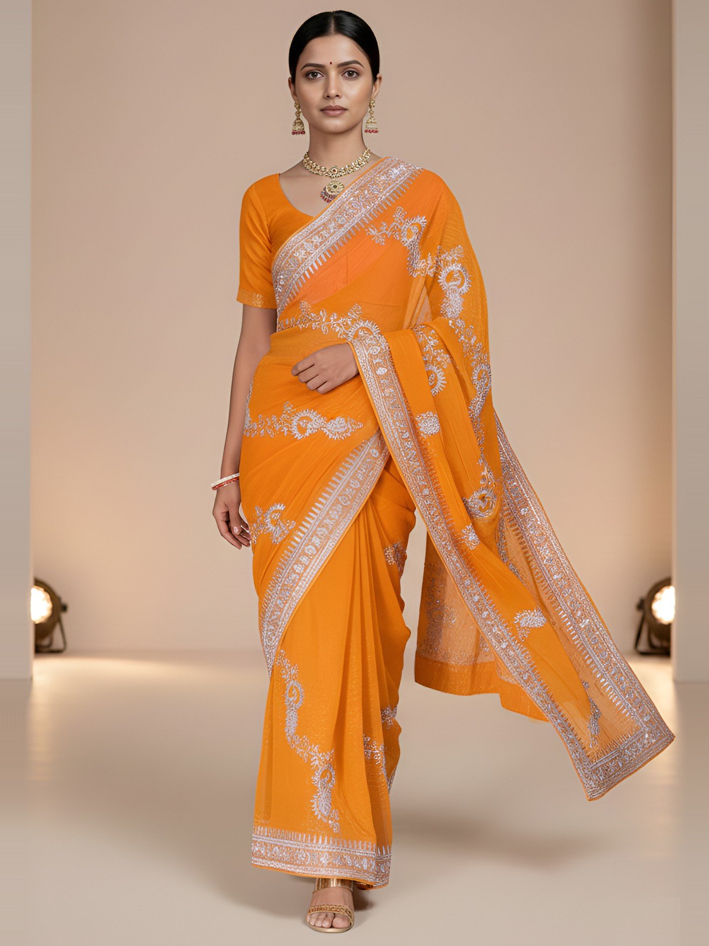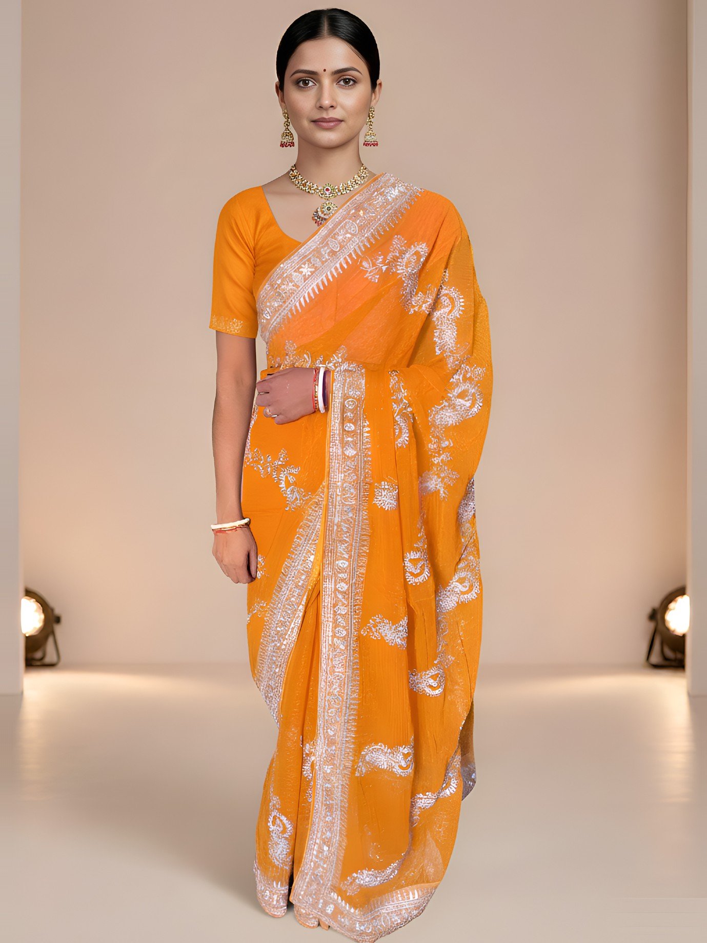 RAjLUXE Shringar Haldi Georgette Embroidered Saree with Blouse Piece (Yellow)