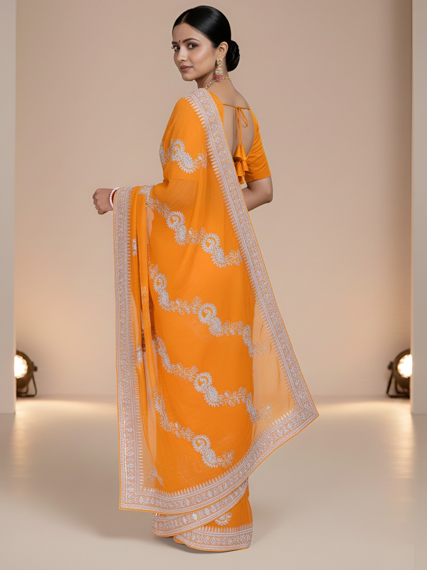 RAjLUXE Comfort Utsaah Chiffon Saree with Blouse Piece (Orange)